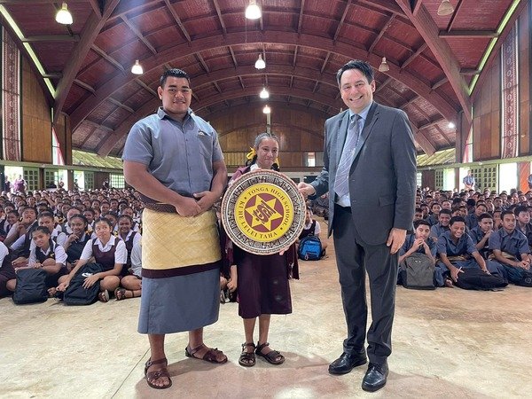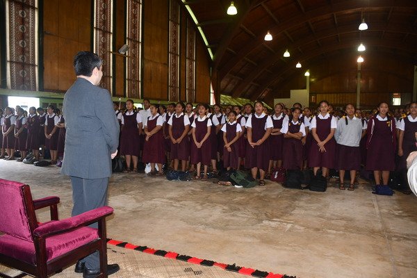 In his visit to Tonga High School, he attended the school assembly where he was welcomed by the Principal Mrs. Sipola Halafihi, teachers and over 1,000 students.