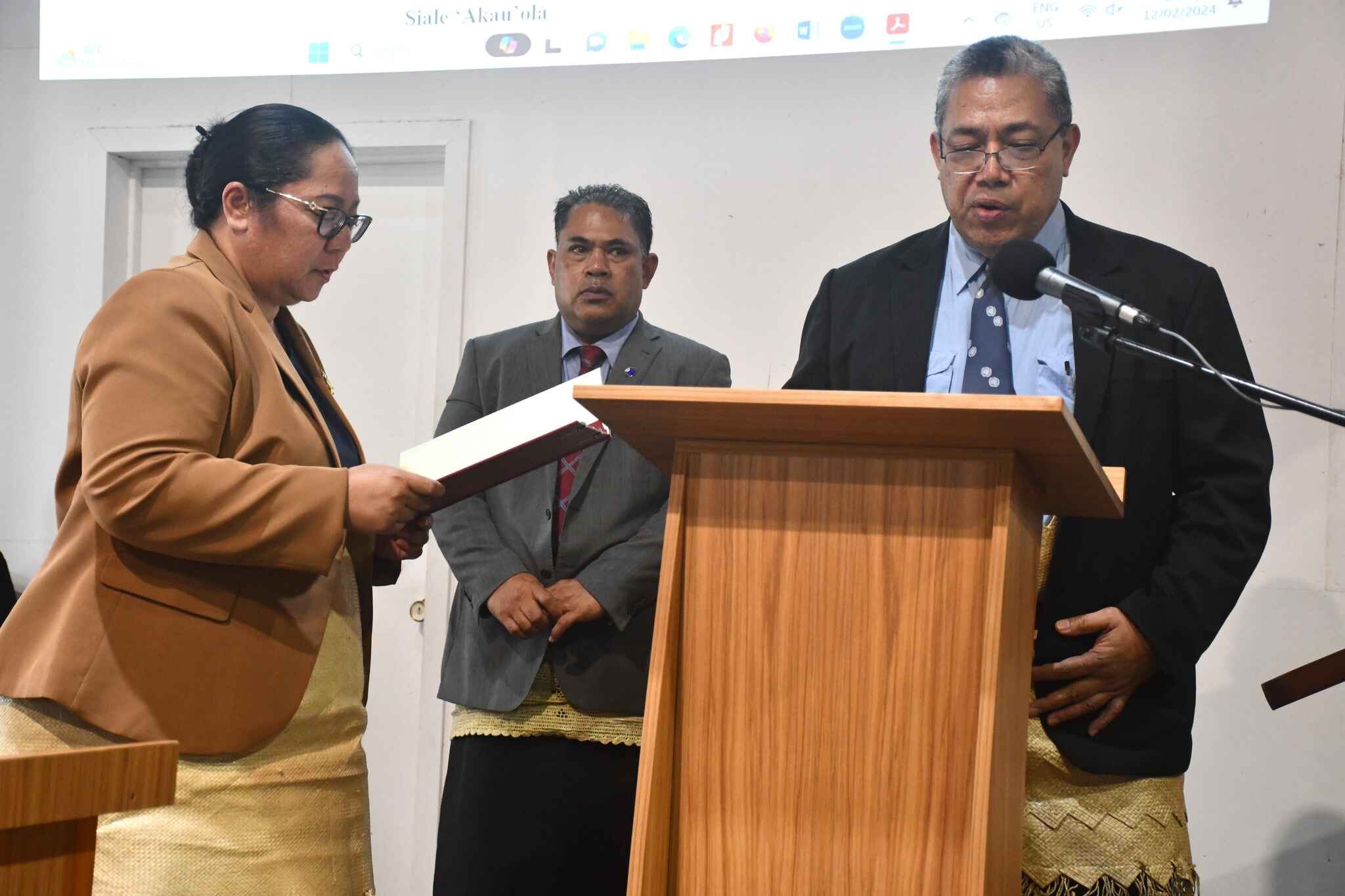 Hon. Dr. Siale ‘Akau’ola ne new Minister of Health took his oath as a Member of Parliament yesterday Monday 12th of February 13, 2024. The newest legislator swore his allegiance to perform his utmost best, obey the King and to abide by the Constitution for the good of Tonga.