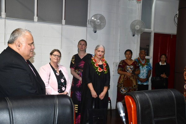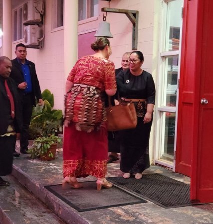 The Chief Clerk of the House, Gloria Pole'o and the Deputy Clerk, Dr. Sione Vikilani greeted Hon. Sepuloni and her delegation at the Tonga Parliament House in Nuku’alofa.
